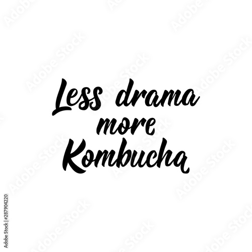 Less drama more Kombucha. Vector illustration. Lettering. Ink illustration. Kombucha healthy fermented probiotic tea.