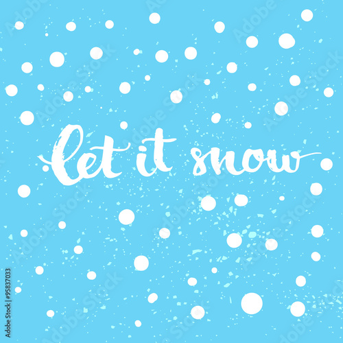 Let it snow - winter card with white snow and hand lettering at blue background. Vector Christmas card with modern calligraphy