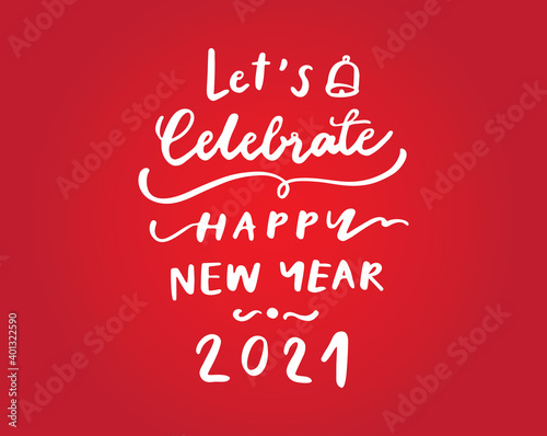 Let's celebrate happy new year 2021 hand drawn text on white background