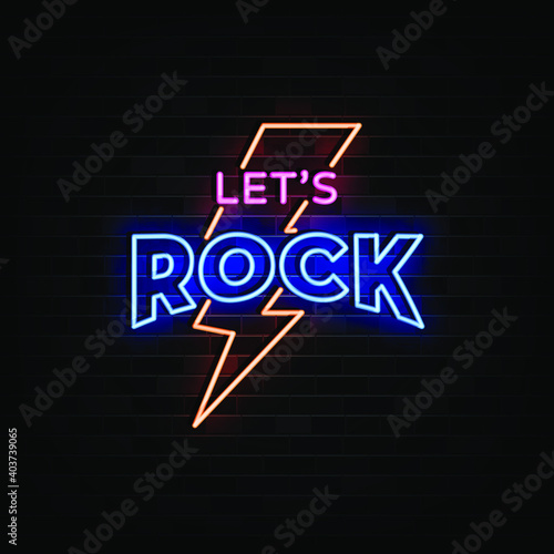 Let's Rock Neon Signs Vector. Design Template Neon Style