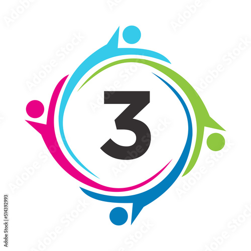 Letter 3 Teamwork Logo Unite Symbol. Charity Sign Community Health Care Union Logotype