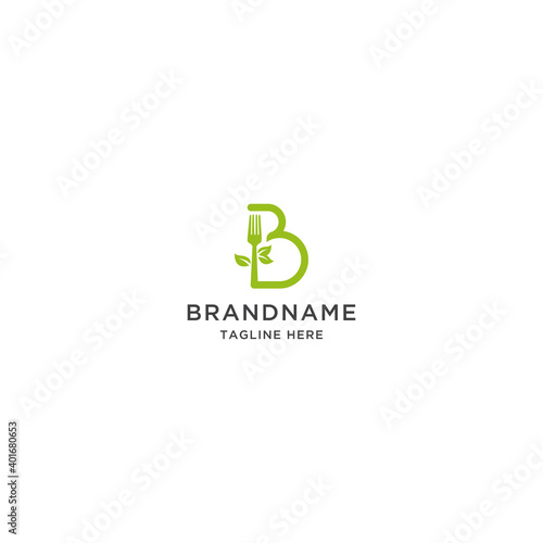 Letter B with fork and leaf logo icon design template