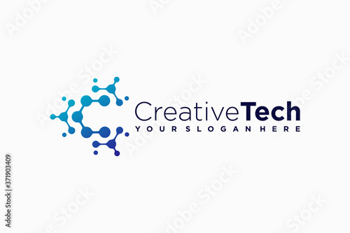 Letter C gradient color technology logo design vector