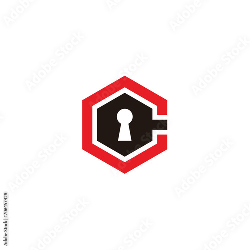 letter c hexagon key lock symbol logo vector