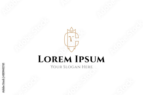 letter c logo with king combination in luxury line art design style