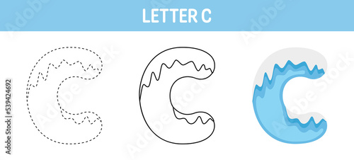 Letter C Snow tracing and coloring worksheet for kids