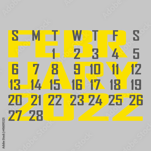Letter calendar for February 2022. The week begins on Sunday. Time, planning and schedule concept. Flat design. Removable calendar for the month. Vector