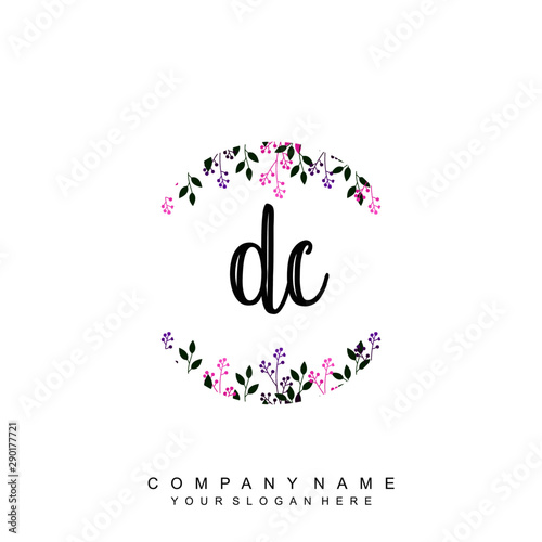 letter DC surrounded by beautiful and elegant flowers and leaves. Wedding monogram logo template. Fashion Logo template Vectors,