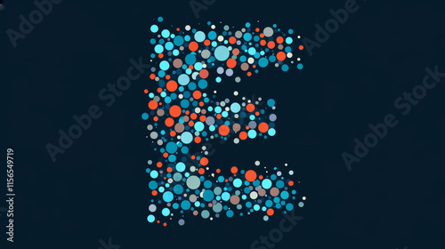 Letter E from the particles. The letter E consists of circles and points. Vector illustration.