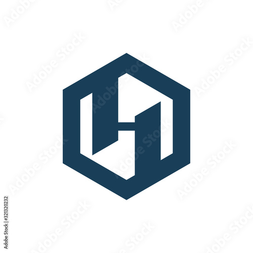letter h hexagon solid strong logo design