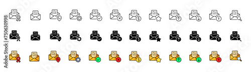 Letter icon collection. Envelope icon set. Linear, silhouette and flat style. Vector icons