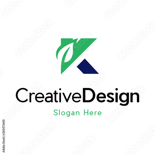 Letter K leaf logo design, Nature Leaf Letter K Vector Logo Template