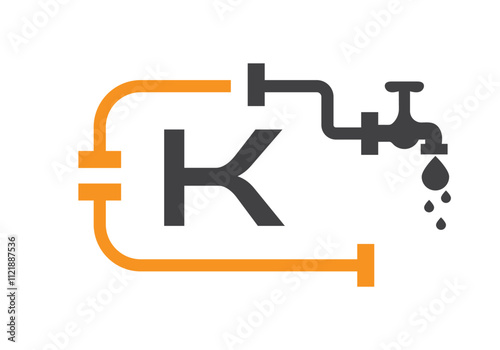 Letter K Plumber Logo Design Vector Template Concept With Pipe And Water Symbol