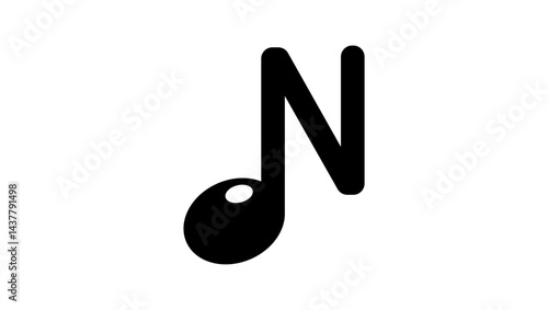 letter N in note shape, black and isolated silhouette