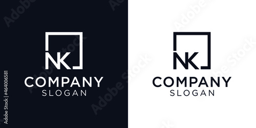 letter NK Logo design with square frame line art. business consulting concept. studio icon - vector