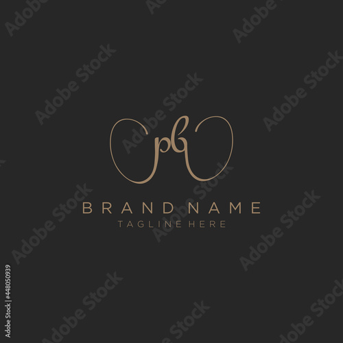 Letter PB gold handwritten logo design template. Black background.