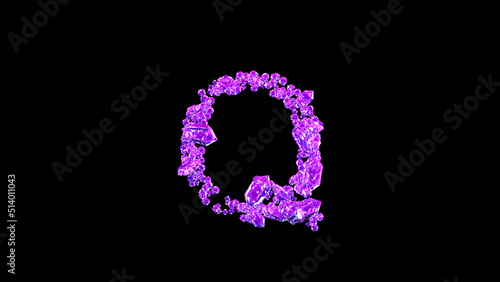 letter Q made of pink glamorous gem stones or symbol on black, isolated - object 3D illustration
