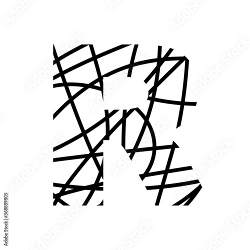 Letter R - bird nest mottled font - isolated, vector