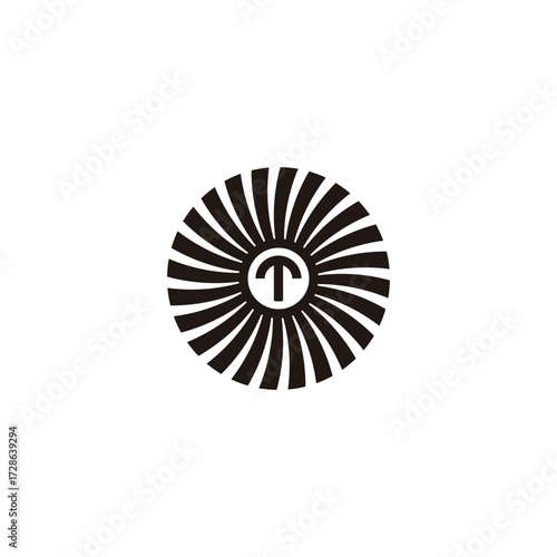 Letter T in ribbon or sun, circle geometric symbol simple logo vector