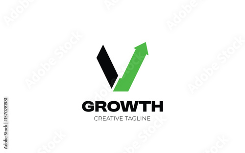 Letter V growth logo with arrow up for invest, investment company in minimalist design