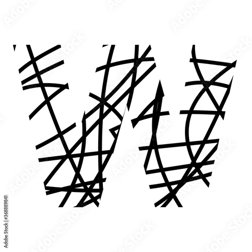 Letter W - bird nest mottled font - isolated, vector
