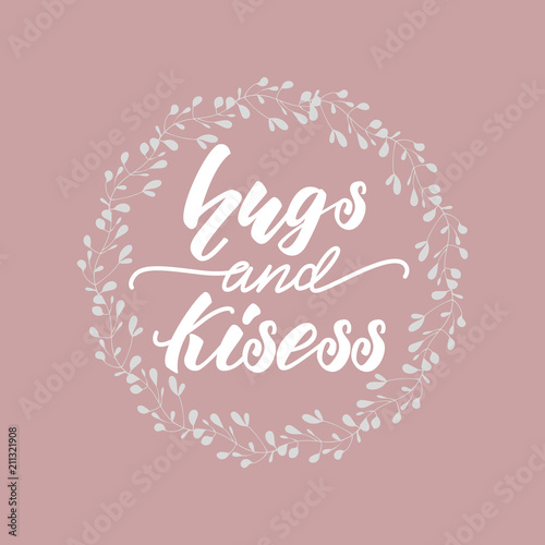 Lettering poster for bedroom "Hugs and kisses". Vector illustration.