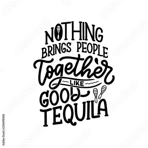 Lettering poster with quote about tequila in vintage style. Calligraphic banner and t shirt print. Hand Drawn placard for pub or bar menu design. Vector