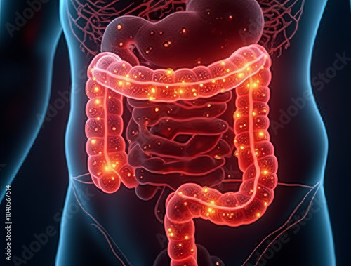 Leuchtender menschlicher Verdauungstrakt in digitaler Illustration