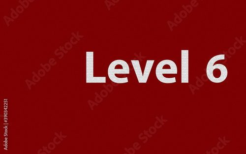 Level 6. White letters on red background.