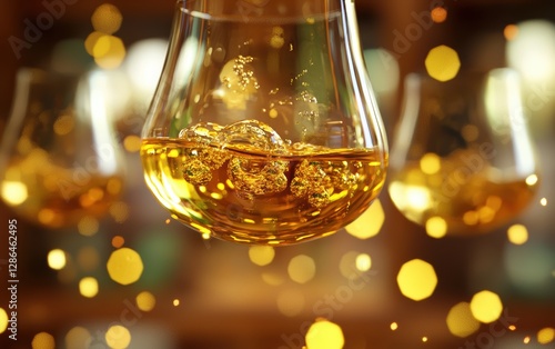 Levitating glasses of golden mead with shimmering reflections St Patrick Day