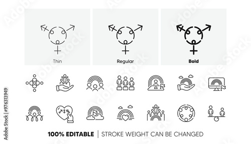 LGBT rights, Equal opportunities and respective needs icons. Equality, Equity and Diversity line icons. Inclusion, culture equity and LGBT pride flag. Diverse people equality, Gender symbol. Vector
