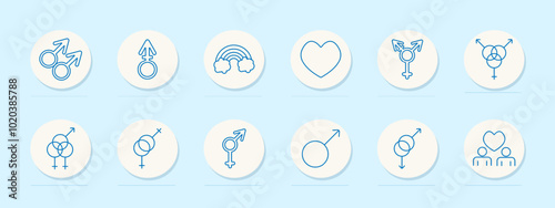 LGBT set icon. Male-male, female-male, rainbow, heart, intersex, trans, arrow, partnership, connected symbols, couple with heart