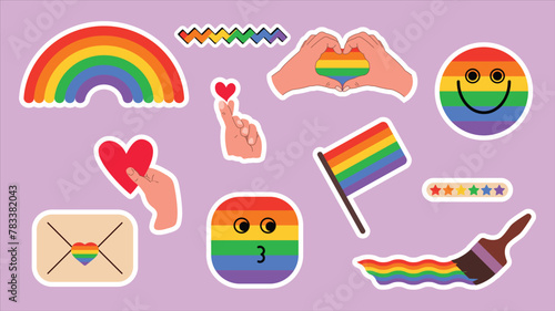 LGBT sticker pack. Sticker set, lgbtq pride, isolated symbols rainbow elements. Gay parade celebration.