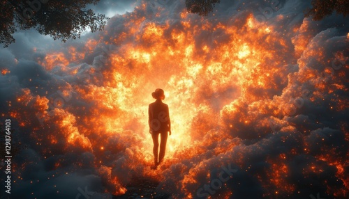 Liberation at Fiery Sunrise Woman Silhouetted in Awe