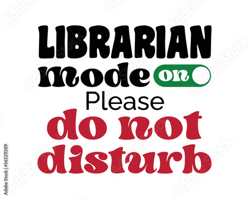LIBRARIAN mode on Please do not disturb funny quote retro groovy typography svg on white background
