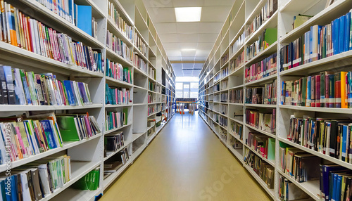 Library corridor. Image of a library with many books lined up.