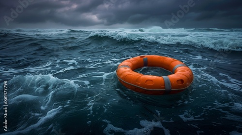 life buoy on the sea storm. Dramatic sky. Generative ai