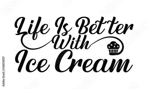Life is better with ice cream- motivational t-shirts design, Hand drawn lettering phrase, Calligraphy, Isolated on white background t-shirt design, SVG, EPS 10