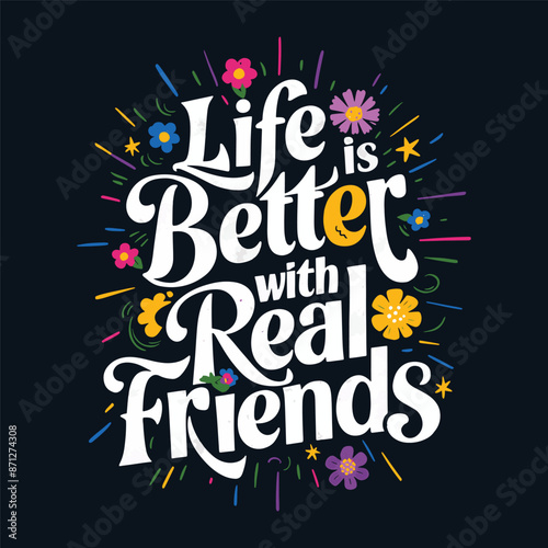 Life is better with real friends quote Typography T Shirt & print Design