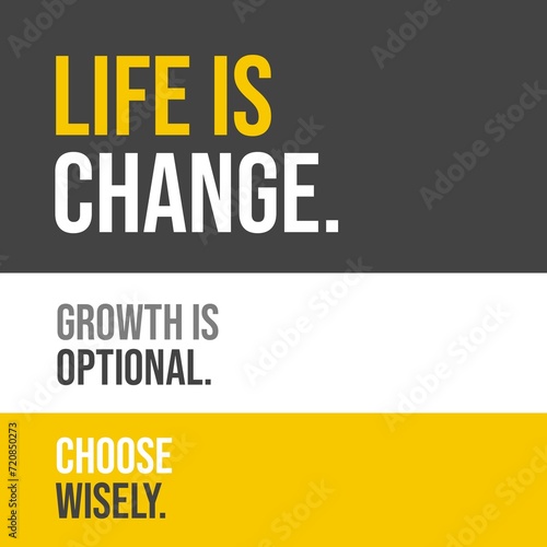 Life is change. Growth is optional. Choose wisely. Motivational Quote Vector Poster Design. Gray, yellow, white background.