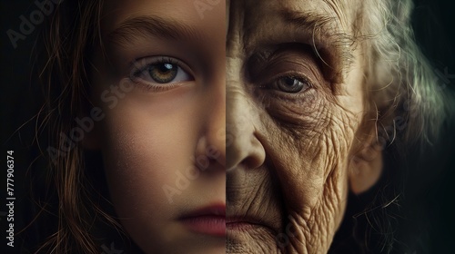 Life Journey Face Divided into Two Halves - Childhood and Old Age