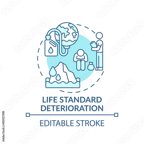 Life standard deterioration concept icon. Climate justice idea thin line illustration. Social change catalyst. Vector isolated outline RGB color drawing. Human influence on nature. Editable stroke