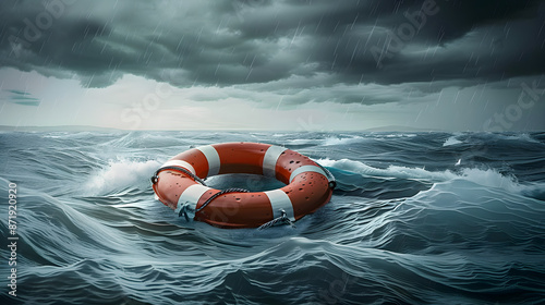 lifebuoy on stormy water.