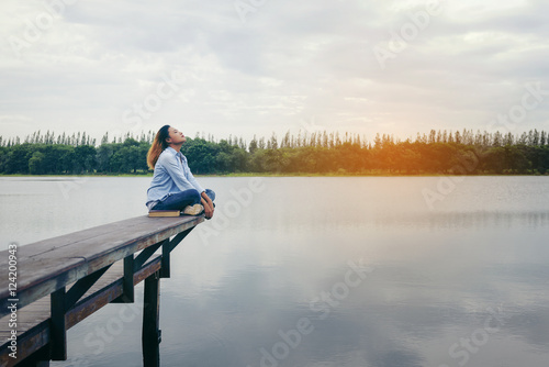 lifestyle concept - beautiful happy woman enjoying fresh air on