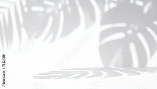 Light and shadow play with monstera leaf silhouettes against a bright background