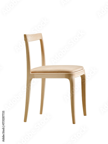 Light beige, simple chair, angled view
