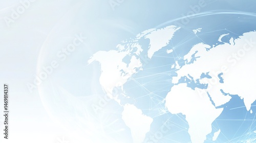 Light blue background with a sleek digital world map, glowing global network connections in white, subtle gradients, futuristic and professional feel.