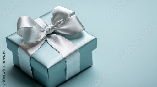 Light blue gift box with white ribbon bow.