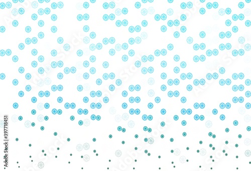 Light Blue, Green vector template with ice snowflakes.