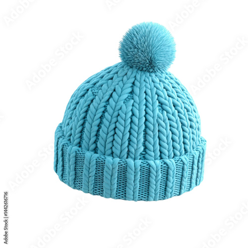 Light blue knitted winter hat with pompom cozy winter accessory warm headwear